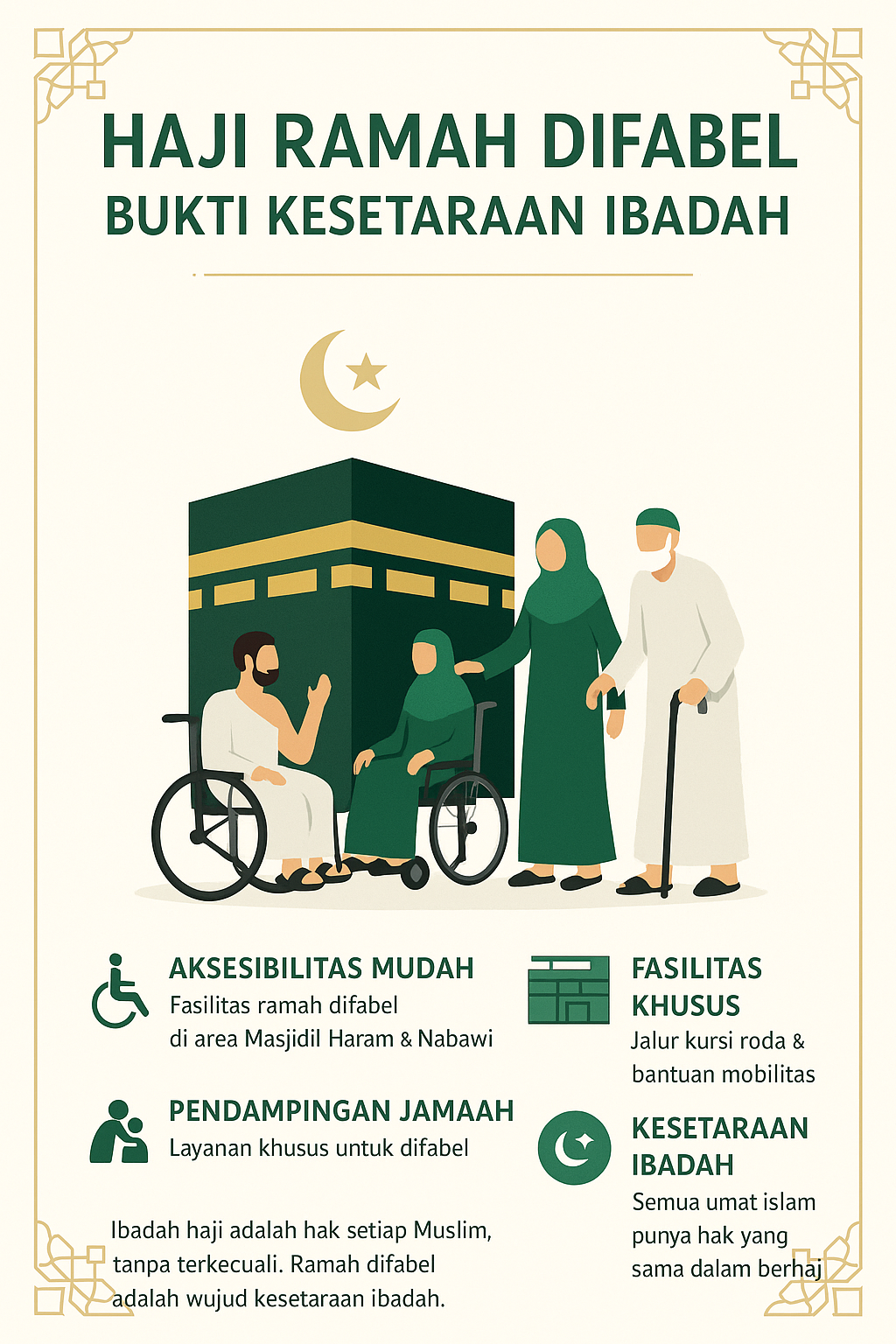 Program haji ramah difabel hadir dengan jalur kursi roda, lift modern, dan pendamping khusus agar ibadah lebih aman, nyaman, dan penuh keberkahan.